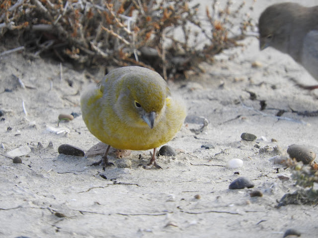 El jilguero austral (Sicalis lebruni) es una especie que se puede observar en diferentes zonas en ambientes de estepas arbustivas en mayor o menor cantidad de individuos de acuerdo a la disponibilidad de alimento y estaciones del año. Su tamaño es de 15 cm y presenta un notable dimorfismo sexual. En la primera foto se mencionan las características del macho y en la segunda foto de la hembra.