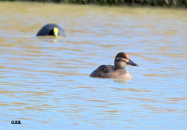 El pato zambullidor chico (Oxyura vittata) es una especie poco común de observar contando sólo con registros para las localidades de Comodoro Rivadavia (Lagunas de la ruta 26 y Quinta Rossi) y Rada Tilly (Laguna de Rada Tilly). Su tamaño es de 40 cm y presenta un notable dimorfismo sexual. Las características para identificar a ambos sexos se mencionan en las dos primeras fotos.