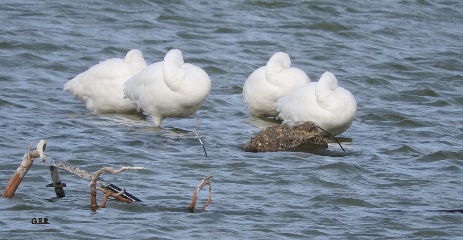 En la Laguna de Rada Tilly además de las especies fotografiadas pude observar una gran bandada de cauquenes comunes (Chloephaga picta) migrando hacia el sur.