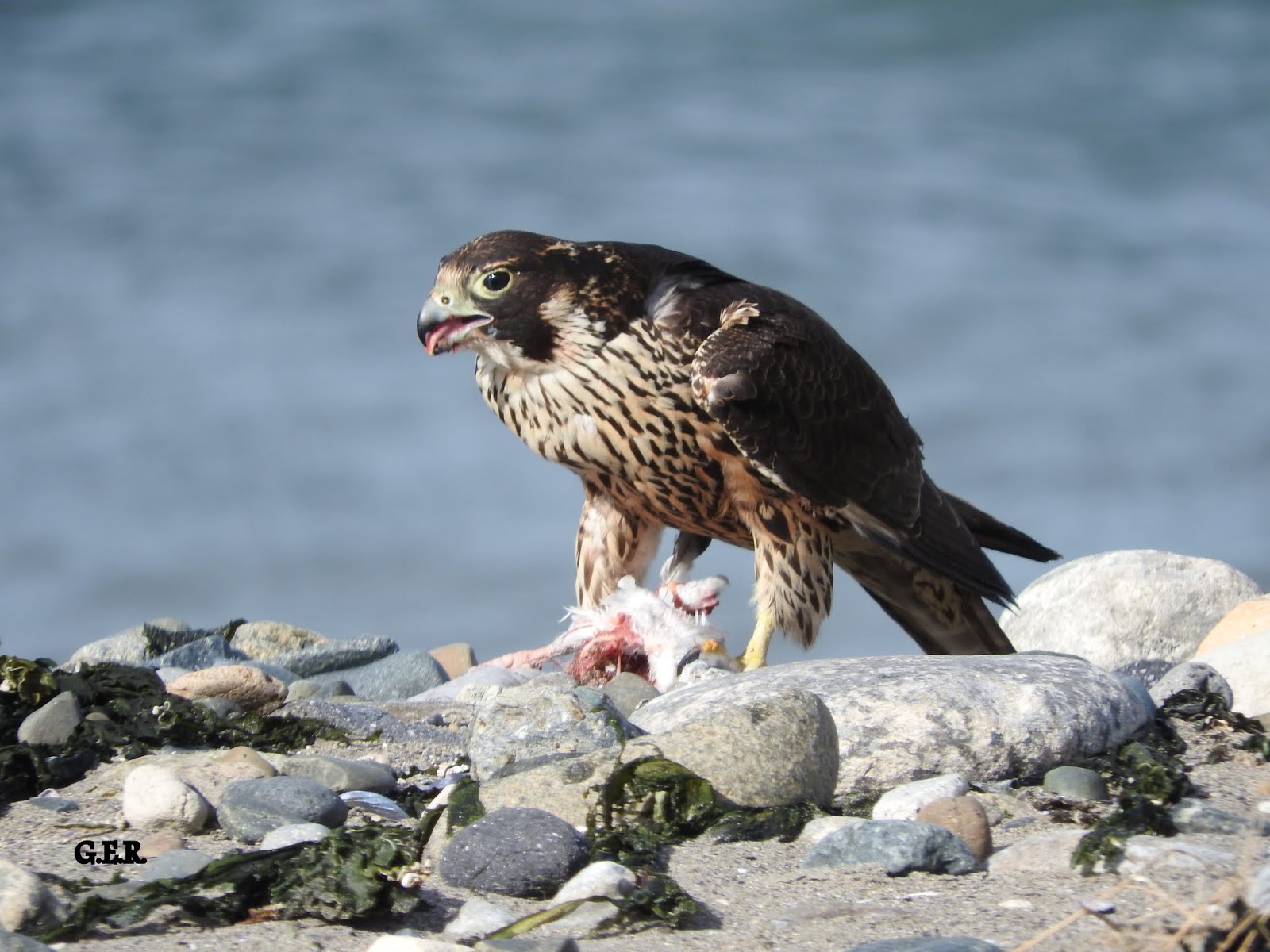 El halcón peregrino (Falco peregrinus) es una especie frecuente de observar en los distintos ambientes costeros y urbanos que abarca el blog y poco común en las estepas circundantes. El tamaño del macho es de 40 cm y la hembra de 50cm. En la primera foto se mencionan sus características generales.