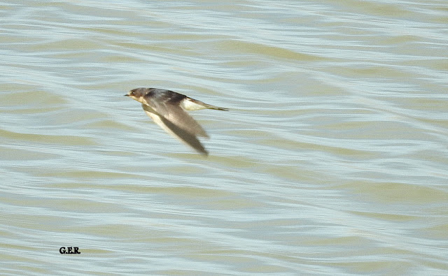 Golondrina tijerita (Hirundo rustica). Especie rara para la zona y en esta oportunidad se pudo observar un grupo de  4 individuos dos adultos y dos juveniles.